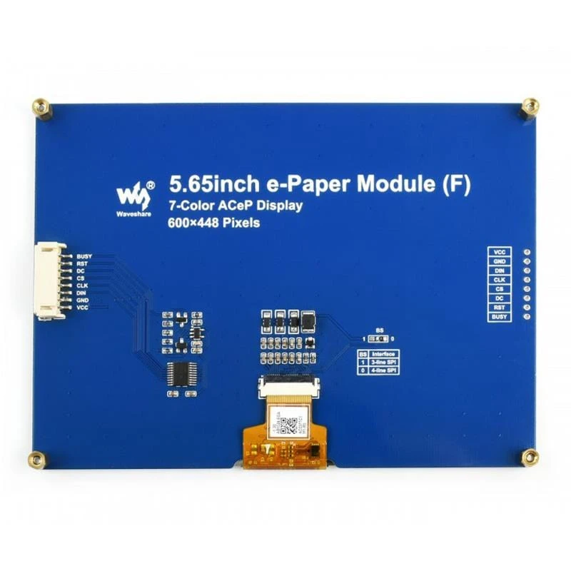 This large 5.65″ ACeP (Advanced Color ePaper) module offers seven colours and a simple SPI interface – making it perfect for low-power
