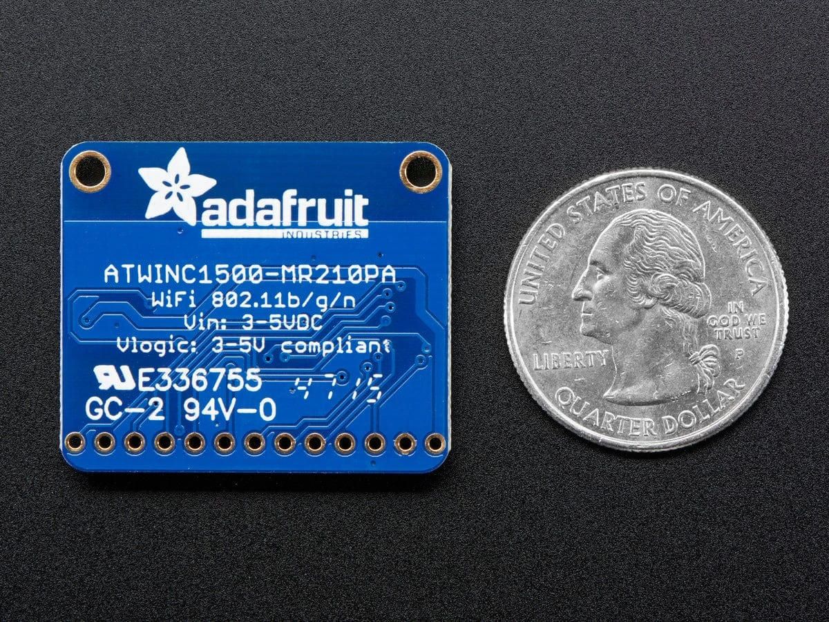 Connect your Arduino to the Internet with this fine new FCC-certified WiFi module from Atmel. This 802.11bgn-capable WiFi module is the best new thing for networking your devices, with SSL support and rock solid performance – running our adafruit.io MQTT demo for a full weekend straight with no hiccups (it would have run longer but we had to go to work, so we unplugged it). We like these so much, they’ve completely replaced the CC3000 module on all our projects.