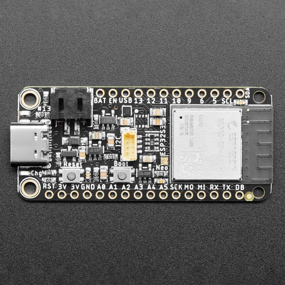 The ESP32-S3 has arrived in Feather format – and what a great way to get started with this powerful new chip from Espressif! With dual 240 MHz cores, WiFi and BLE support, and native USB, this Feather is great for powering your IoT projects.