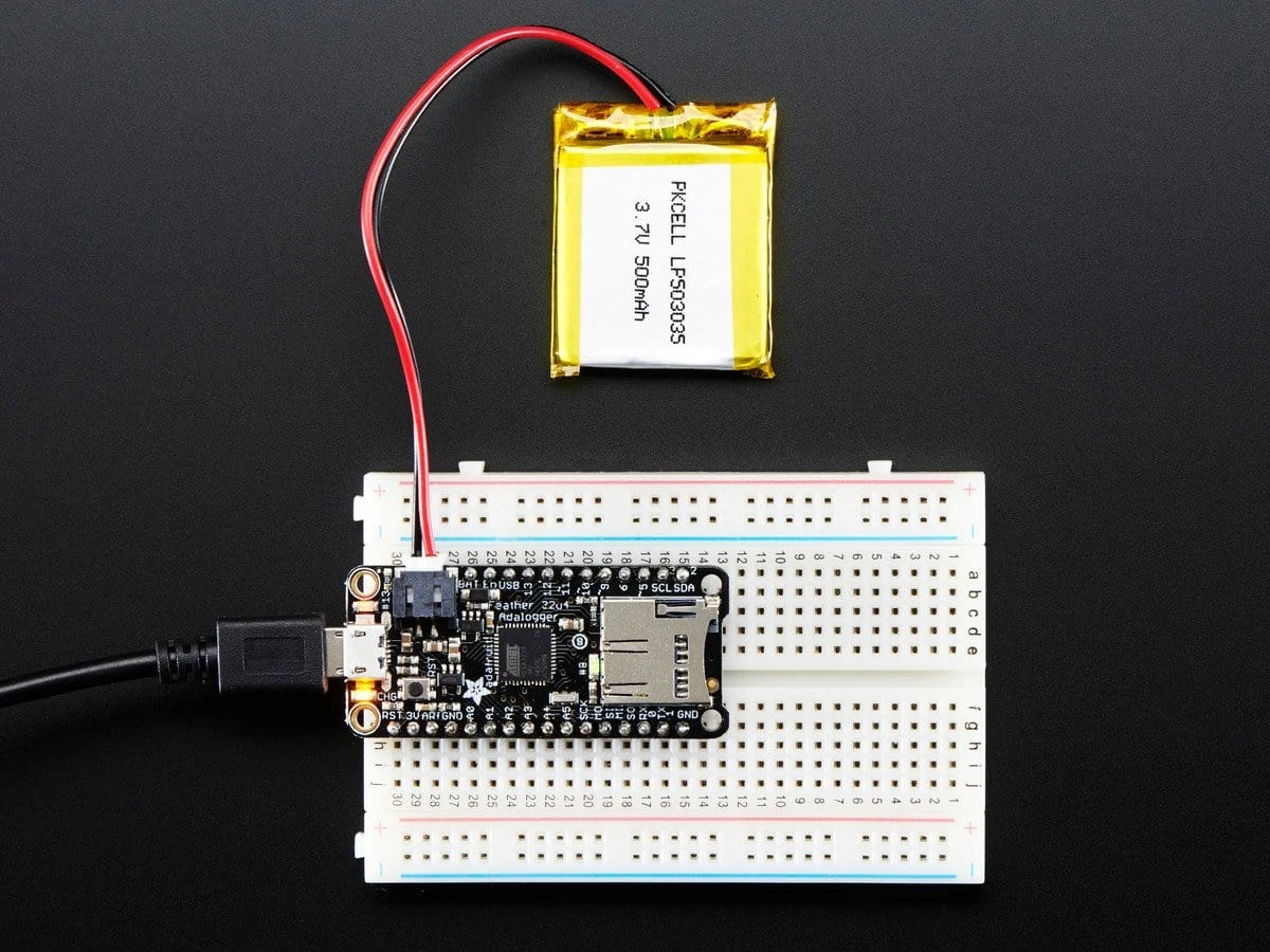 Comes fully assembled and tested, with a USB bootloader that lets you quickly use it with the Arduino IDE. We also toss in some header so you can solder it in and plug into a solderless breadboard. Lipoly battery, MicroSD card and USB cable not included (but we do have lots of options in the shop if you’d like!)