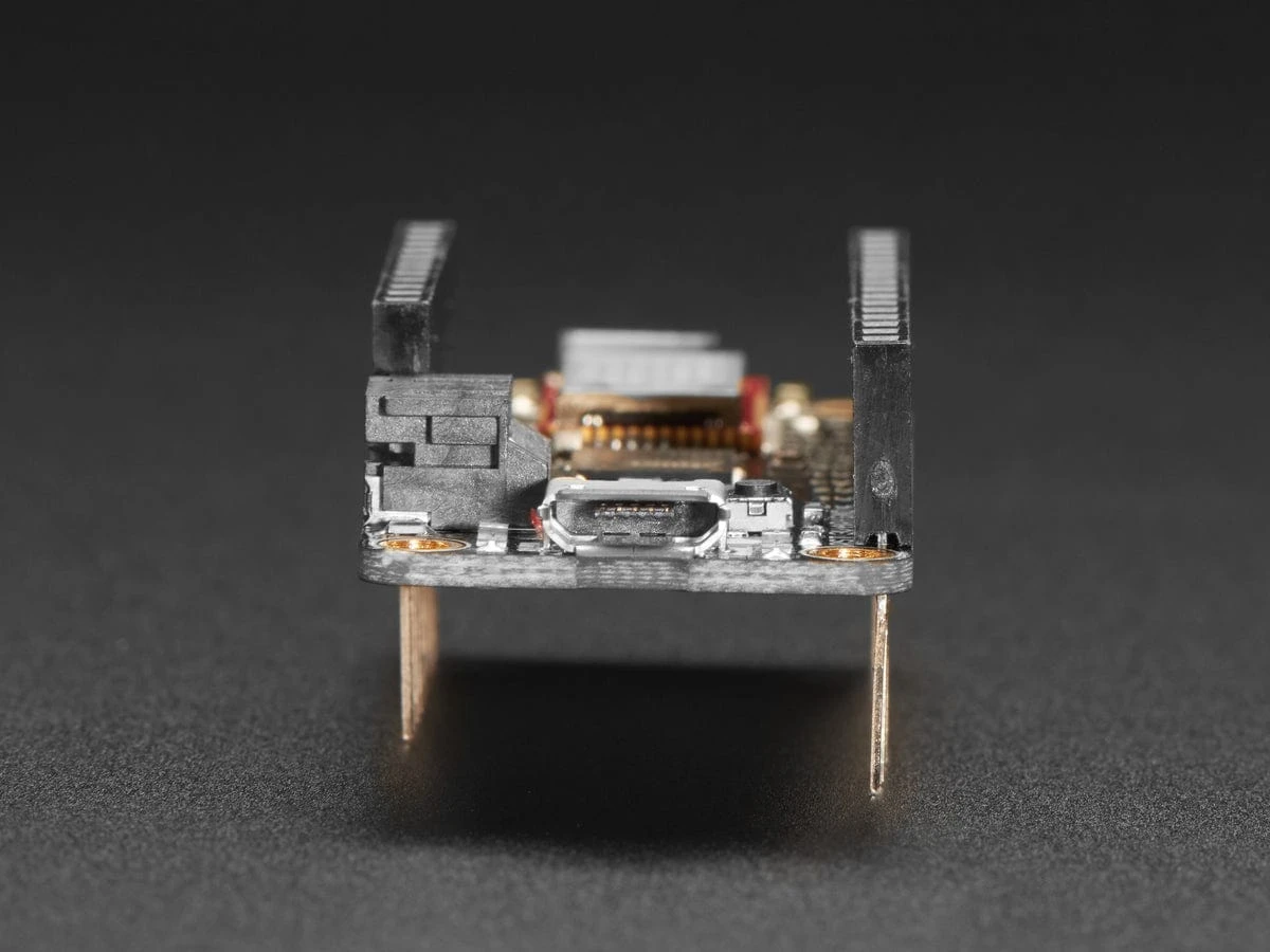 At the Feather 32u4’s heart is at ATmega32u4 clocked at 8 MHz and at 3.3V logic, a chip setup we’ve had tons of experience with as