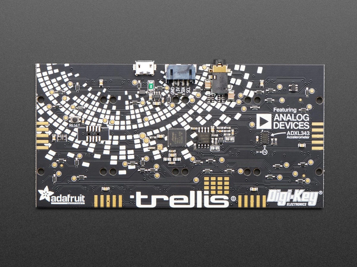 To add more interactivity, a precision triple-axis accelerometer from Analog Devices, the ADXL343, is included as well, and provides sensor information on tilt, motion, or tapping. Great for adding another dimension of data input in addition to the button pads.
