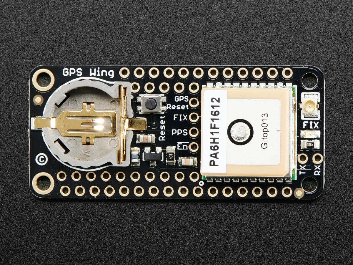 Comes as a fully assembled FeatherWing with GPS module and a coin cell holder. However, the 12mm coin cell is not included – it isn’t required but if you would like a battery backup, a CR1220 coin battery must be purchased seperately. We also toss in some header so you can solder it in and plug into your Feather.