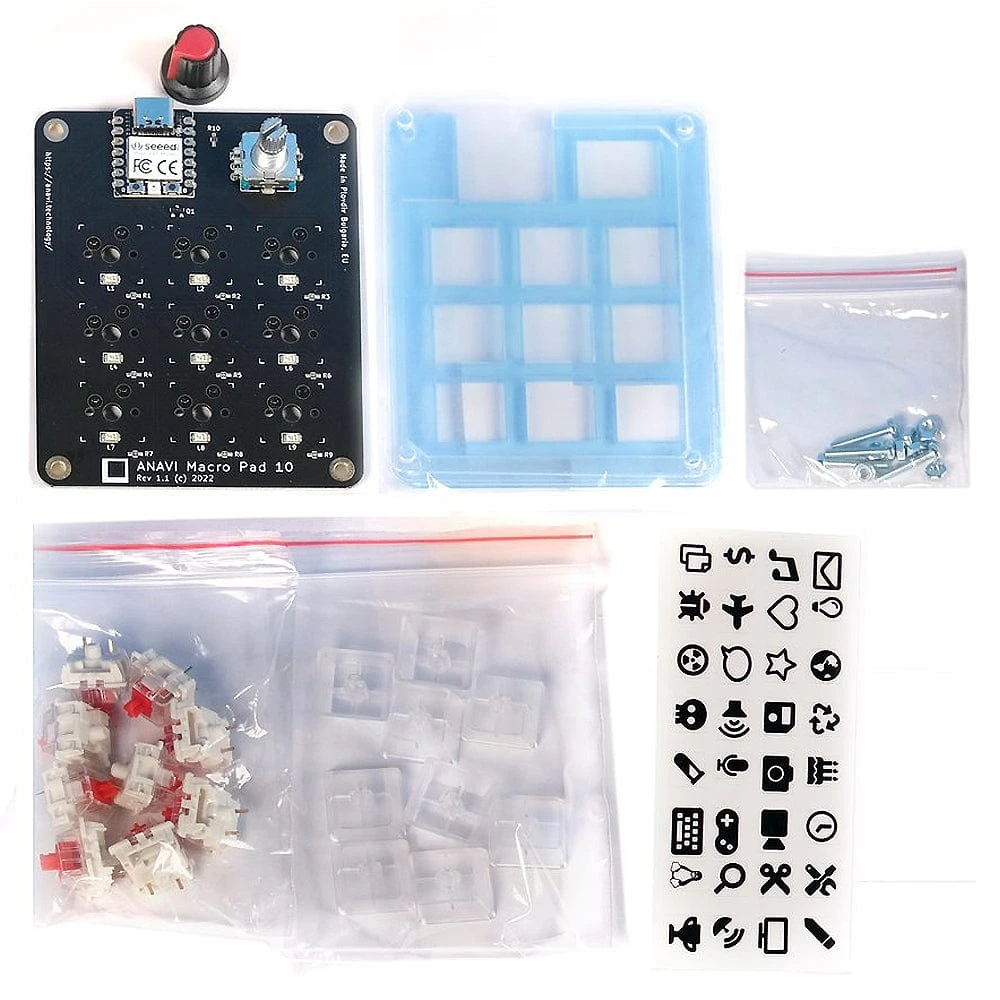 - 1x Anavi Macro Pad10 kit (PCB and acrylic enclosure kit with stickers)