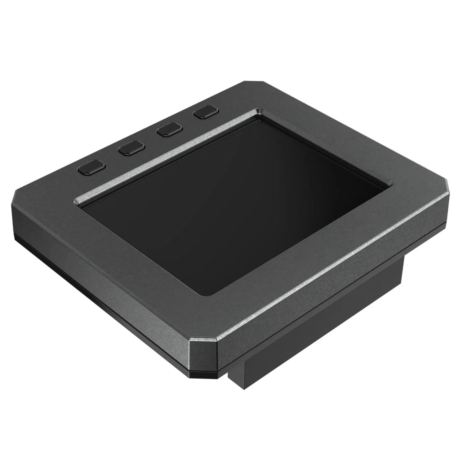 The POD 2.8″ Display module simply pushes onto your assembled Pod case (with USB HDMI module attached and soldered GPIO headers) to provide a compact display and four programmable buttons. An embedded IR receiver is also onboard for IR controls.