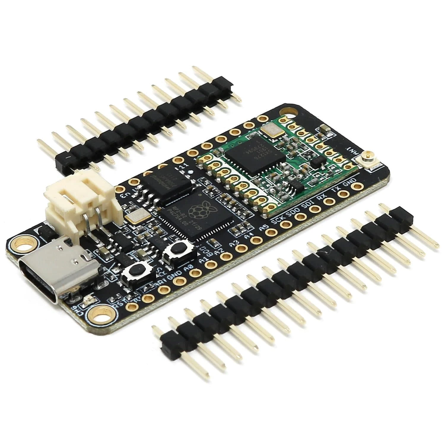 The onboard microcontroller (RP2040) has a number of communication channels that have been routed out to the side (header connector) connectors.