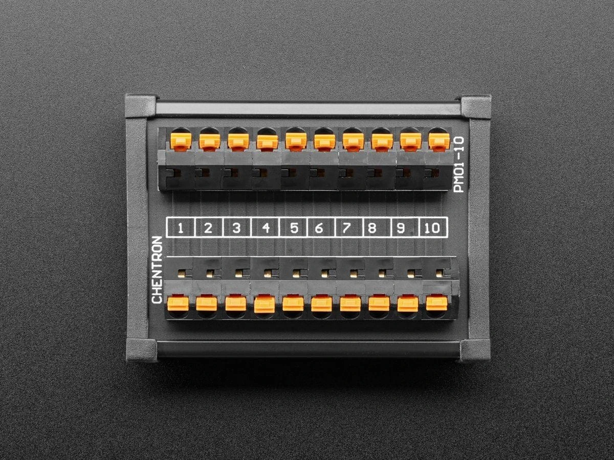 No soldering required! Just push in the terminal block tabs and slide in your stranded or solid-core wire. DIN rail not included, of course.