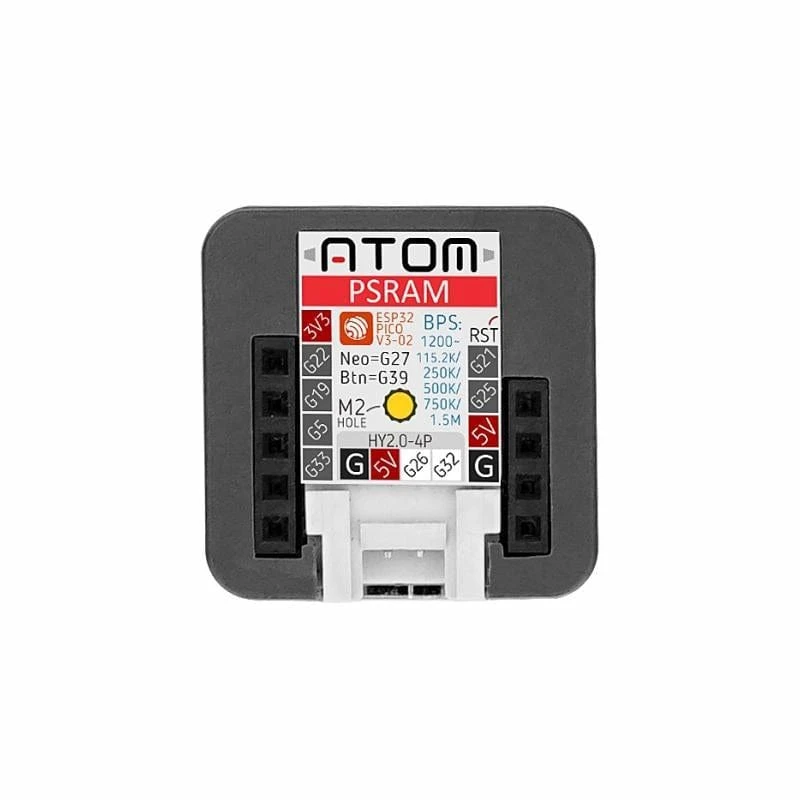 - Built-in ATOM PSRAM main controller (ESP32-PICO-V3-02, 8M Flash + 2M PSRAM)