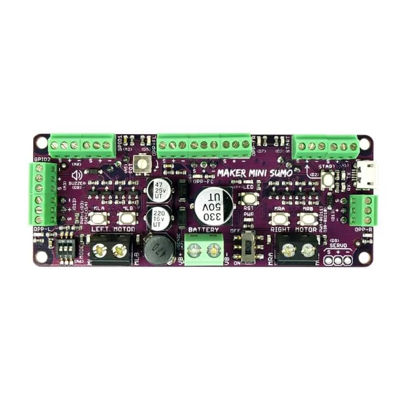 Want to take part in a robotics/Sumo robot competition but don’t want to get your hands dirty dealing with electronics? The Maker Mini Sumo Controller is the ultimate board for you – whether you’re a beginner or a professional robot builder.